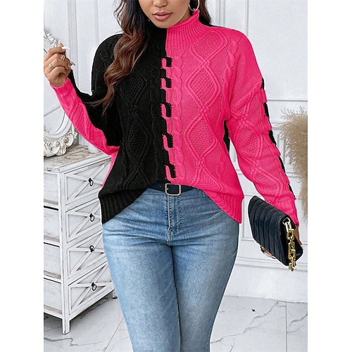 Per donna Felpa Casual Morbido Blocco di colori A Coste Collo alto Lavorato a maglia Manica Lunga Top Regolari Maglia All'aperto Quotidiano Weekend Nero Rosso Autunno Inverno