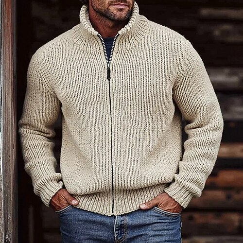 Per uomo Maglione A Coste Maglia Top Regolari Con zip Lavorato a maglia Semplice Collo alla coreana Maglieria Moderno Contemporaneo Casuale Abbigliamento quotidiano Abbigliamento Autunno Inverno