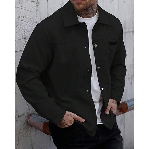 Per uomo Giacca Leggera Giacca in Velluto a Coste Giacca Cargo Giacca Casual Vacanza Quotidiano Traspirante Tasca Primavera Autunno Semplice Moda Classico Collo alla coreana Regolare Aalbicocca Nero