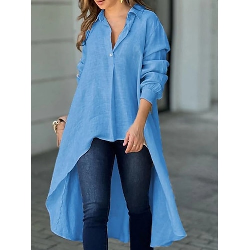 Per donna Camicia popover Camicia casual Blusa Bottoni Tinta unica Vacanza Elegante Essenziale Manica Lunga Collo ripiegato Top lunghi Quotidiano All'aperto Ferie Blu Rosso Arancione Grigio Estate
