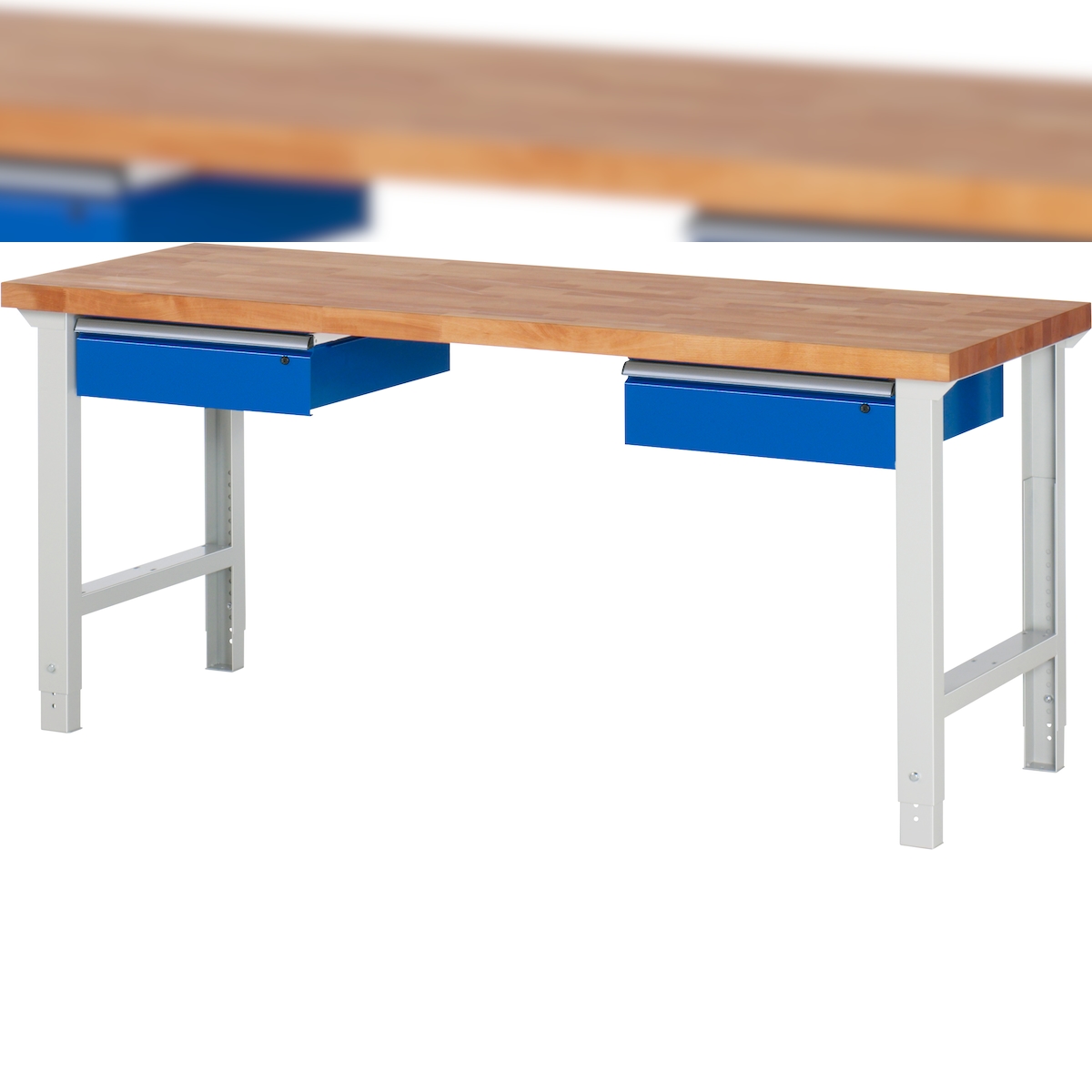 PROREGAL Werkbank Serie 7000 - Modell 7002 | HxBxT 79-114x200x70cm | 2x Schublade | Schubladenmaße 2x150mm | Lichtgrau | Arbeitstisch Werktisch