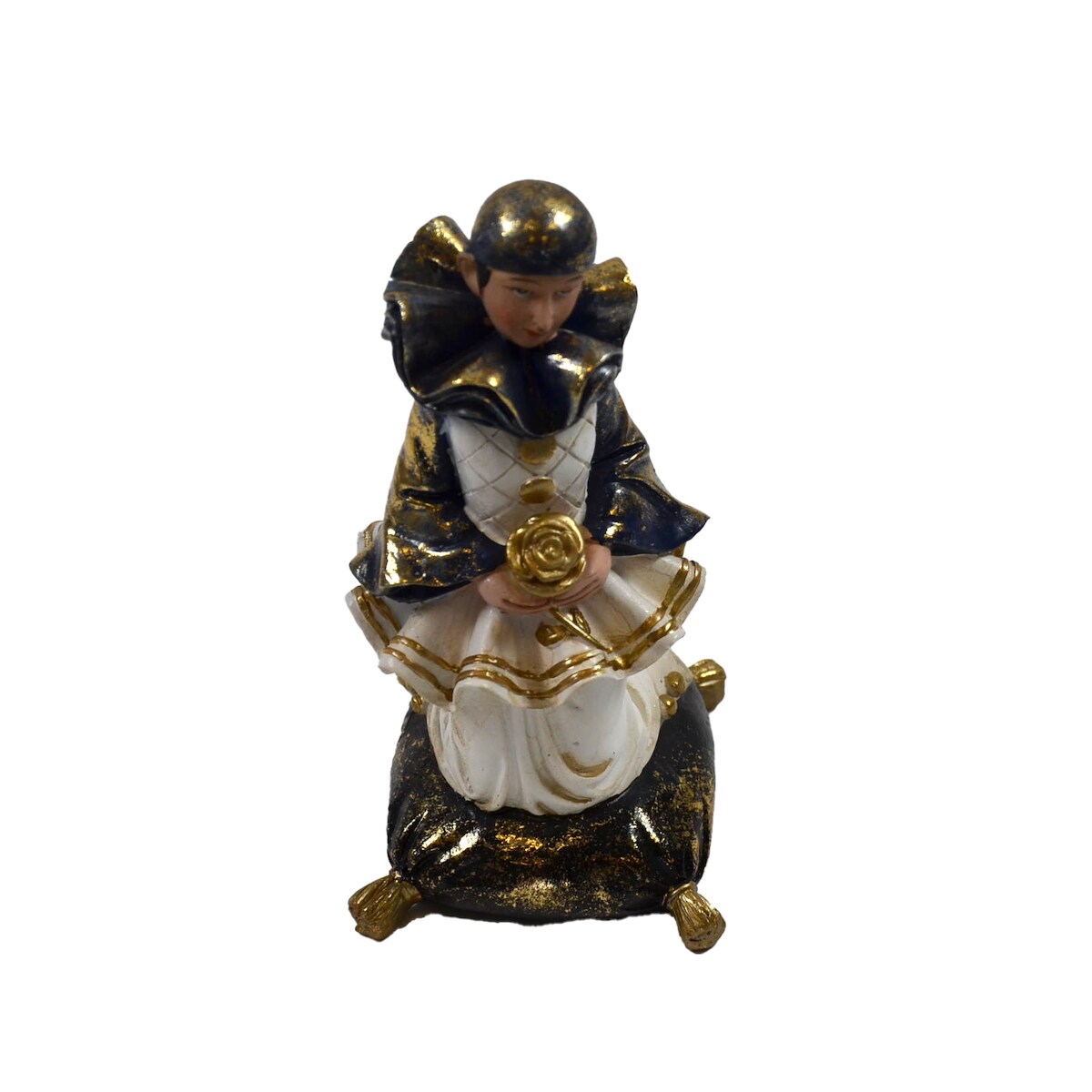 Dekofigur Pierrot Figur kniend Kissen Dekoration Polyresin weiss H 21 cm
