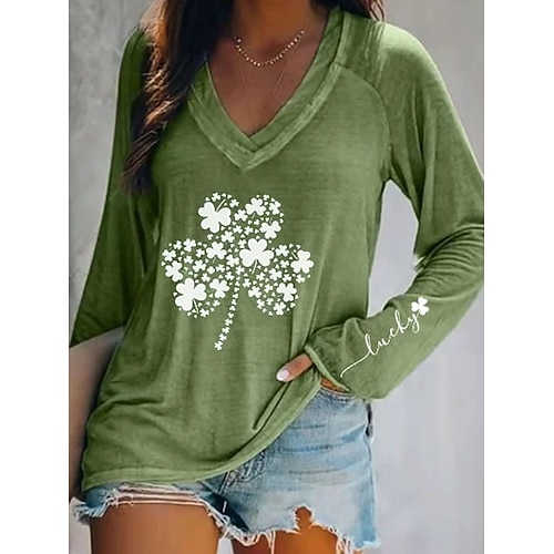 Giorno di San Patrizio Festa di San Patrizio Per donna Maglietta Trifoglio Lettera Moda Manica Lunga Scollo a V Top Regolari Casuale Giorno di San Patrizio Stampato Blu Bianco Rosa Verde Grigio