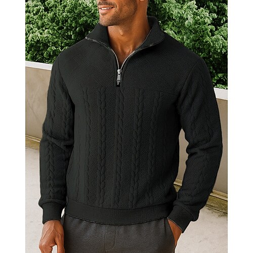 Per uomo Top casual Felpa lavorata a maglia Cerniera a un quarto Maglia a trecce Manica Lunga Top Athleisure Tinta unita Di tendenza Caldo All'aperto Viaggio Sportivo abbigliamento sportivo