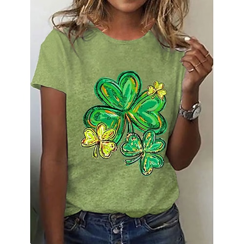 Giorno di San Patrizio Festa di San Patrizio Per donna Maglietta Cuore Foglia Giorno di San Patrizio Manica Corta Scollo a V Top Regolari Ferie Weekend Stampato Verde primavera Verde chiaro Verde