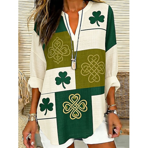 Festa di San Patrizio Per donna Camicia Tunica Grafico Trifoglio Vintage Quotidiano Elegante Manica Lunga Scollo a V Top Regolari Quotidiano Ferie Stampato Bianco Verde Estate Primavera