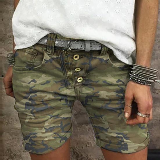 High Waist Camouflage Print Women Shorts All-matched Stretchy Buttons Denim Shorts Streetwear cm grey