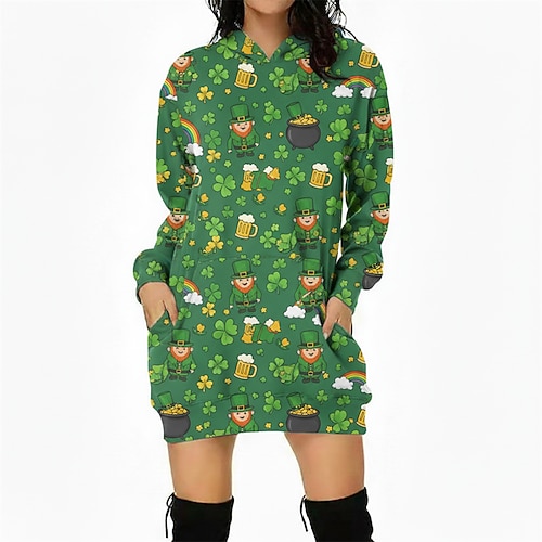 San Patrizio 2026 Trifoglio Irlandese fortunato Carnevale Felpa con cappuccio Innovativo Divertente Adulti Per donna Giorno di San Patrizio Casuale Feste Costume di Carnevale facile Vestirsi
