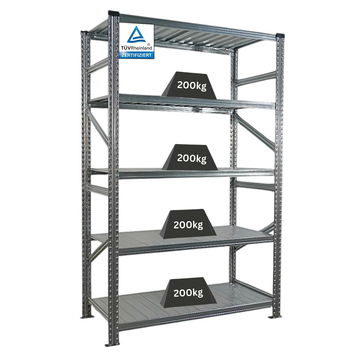 shelfplaza PRO 200x75x40 cm Schwerlastregal in verzinkt mit 5 Böden und 200 kg Traglast pro Boden