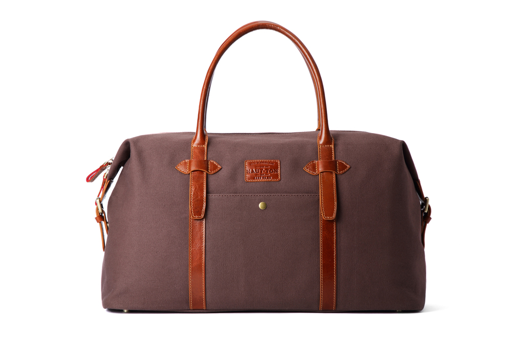 Woodland Leathers Mens Hautton Leather Brown Canvass And Tan Mix Holdall 19.0" Central Zip Compartment Adjustable Shoulder Strap - One Size