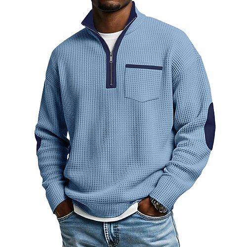 Per uomo Maglietta Waffle Maglietta Maglia Henley a nido d'ape Camicie da uomo con toppe sui gomiti Manica Lunga Collo Alto Mezza zip Autunno Inverno Tinta unica Patchwork Tradizionale / Vintage