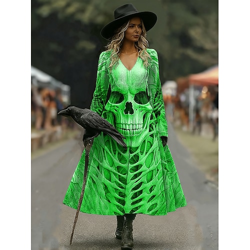 Abito midi da donna con stampa teschi taglio A vacanza casual