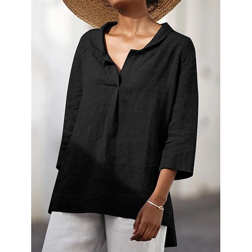 Per donna Blusa Tinta unica Elegante Casual Manica 3/4 Scollo a V Top Regolari Quotidiano Arricciato Nero Bianco Arancione Estate Primavera