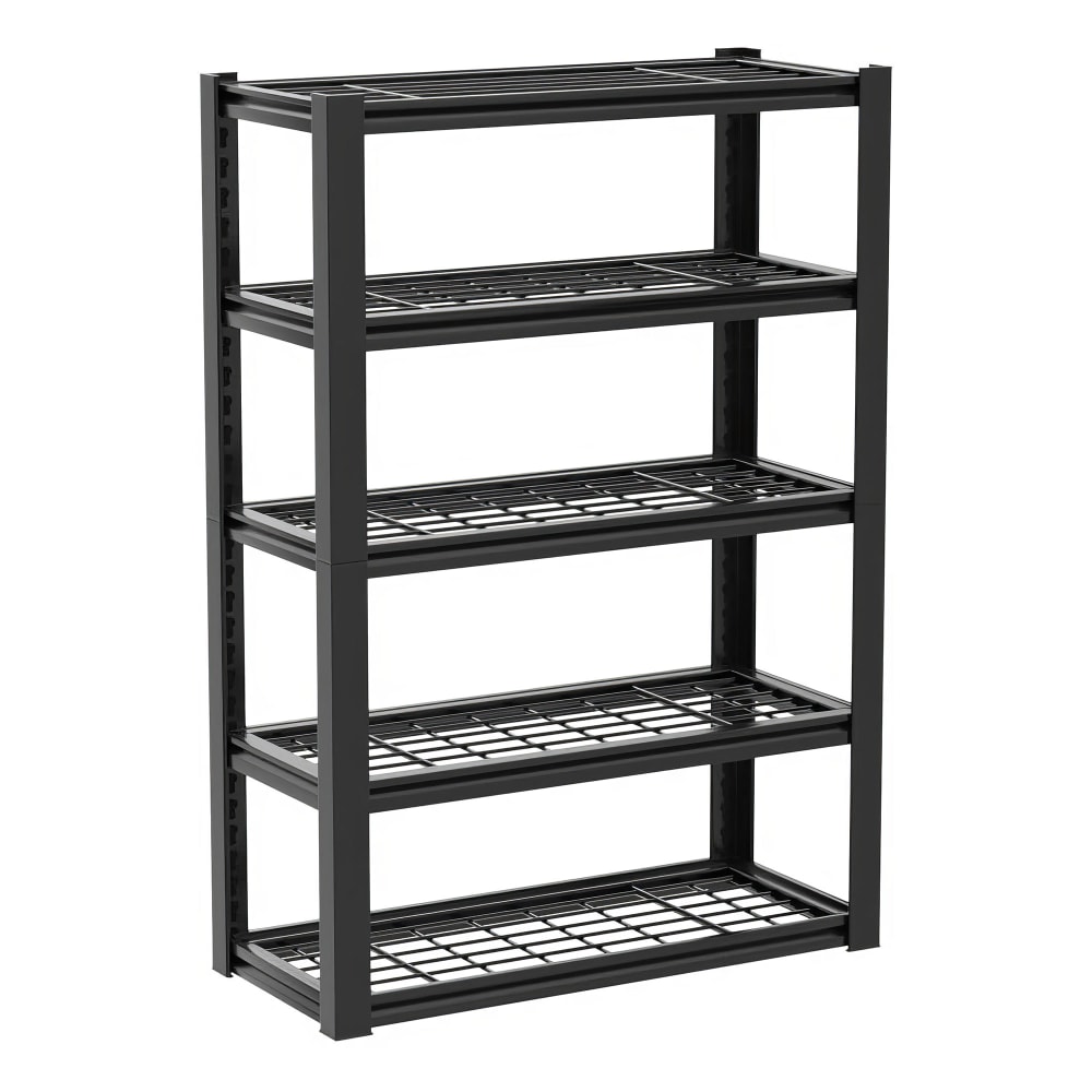Scaffale in metallo con 5 ripiani in reticolato portata 1365kg nero