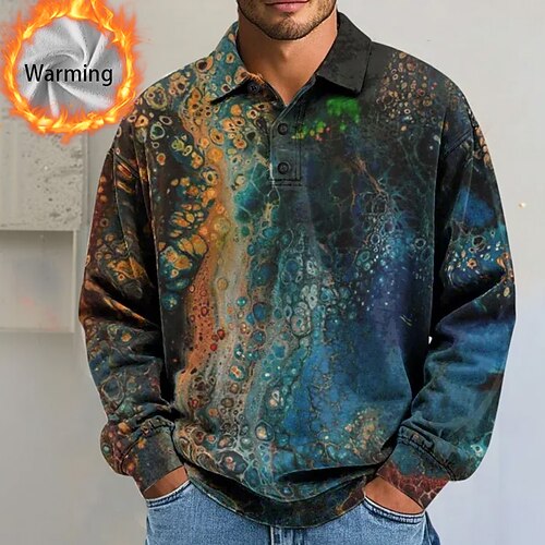 Per uomo Astratto Geometrico Polo Camicie termiche Manica Lunga Magliette polo Bavero Casual Athleisure Ferie Abbigliamento quotidiano Stampa 3D Autunno Inverno Blu Blu 1 Blu scuro
