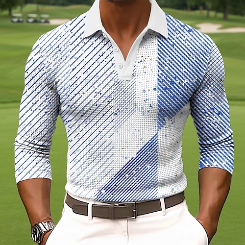 Per uomo Geometrico Magliette Polo a Nido d'Ape Polo da rugby Testurizzato Manica Lunga Magliette polo Bavero Abbigliamento Sportivo Casual Scuola Athleisure Abbigliamento quotidiano Stampa 3D