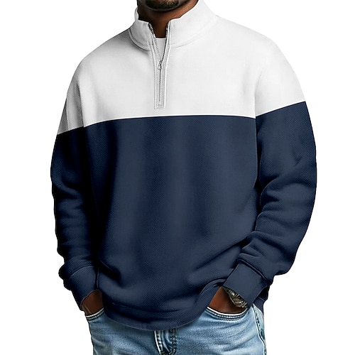Per uomo Blocco di colori Polo con zip Manica Lunga Magliette polo Colletto alla coreana Casual Scuola Athleisure Ferie Abbigliamento quotidiano Stampa 3D Polo con cerniera a un quarto Primavera