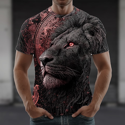 Per uomo Leone 3D Maglietta Manica Corta maglietta Stampa 3D Girocollo Camicia Esagerato Designer Feste Streetwear Casuale Giallo Rosso Viola Estate Primavera Tutte le stagioni Abbigliamento S M L XL