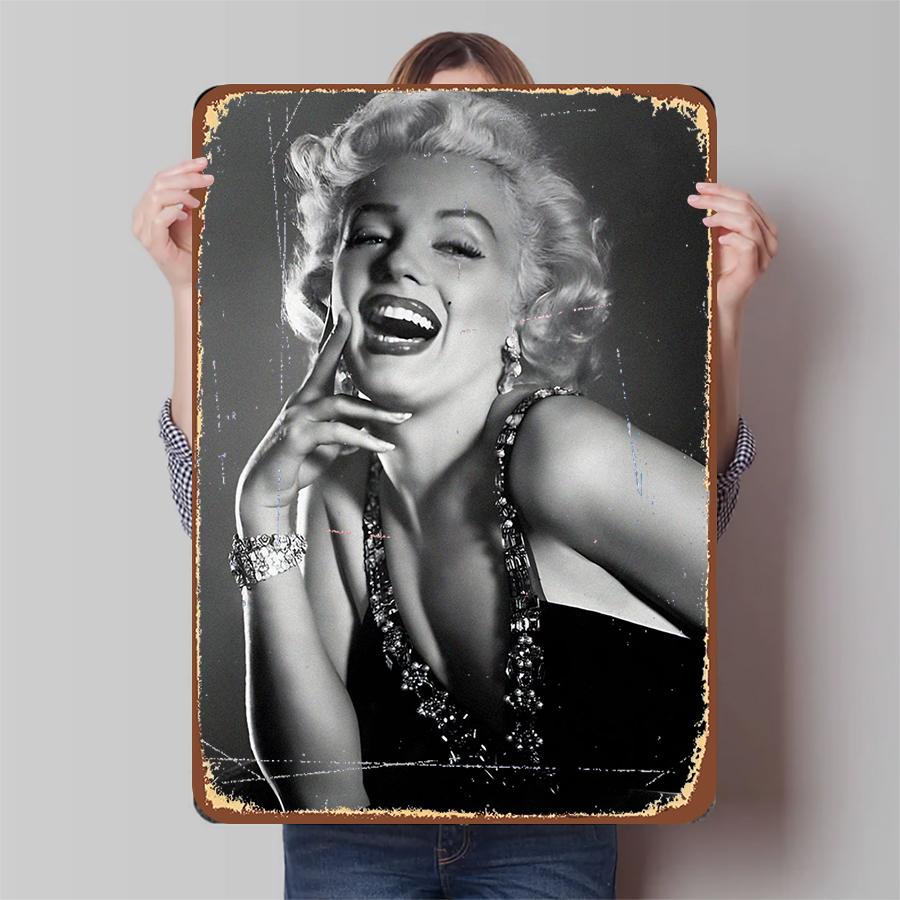 Klassisk Marilyn Monroe Svart-hvitt Smil Portrett Retro Metall Blekk Skilt Veggkunst for Stue Soverom Bar Hjemmeinnredning