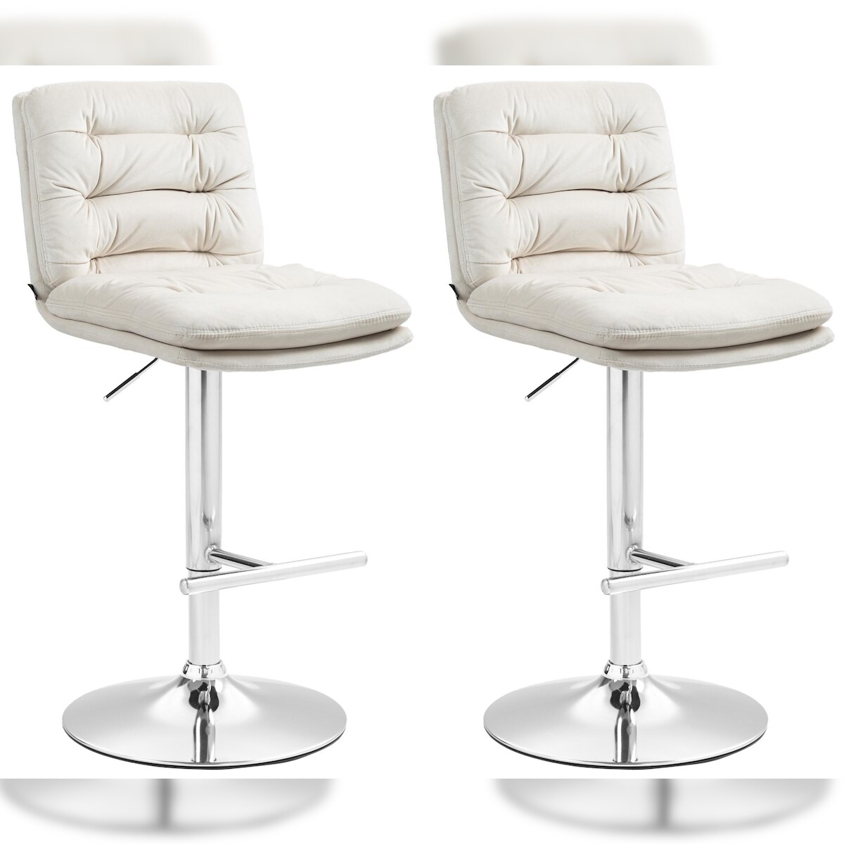 DELUKE® Barhocker 2er Set TURIN - Creme, Samt, Weiß | Barhocker mit Lehne Barstuhl Tresenhocker Tresenstuhl Kneipenhocker Kneipenstuhl