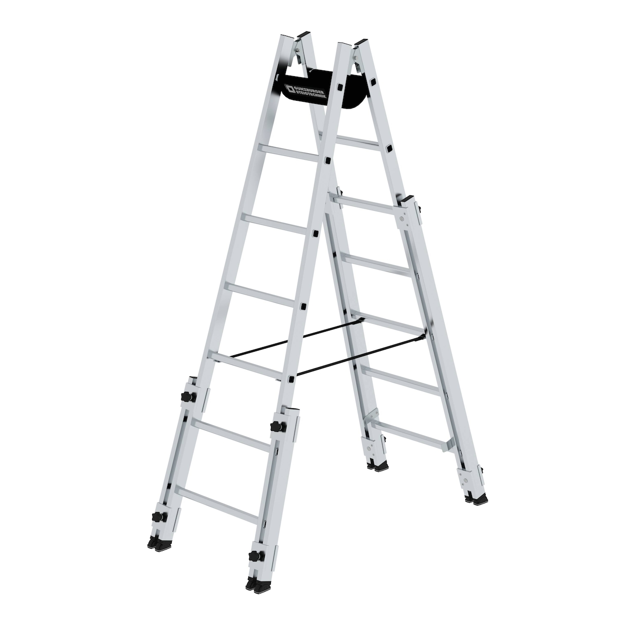Munk Günzburger Steigtechnik MUNK Aluminium Stehleiter, treppengängig, mit 4 Holmverlängerungen 2x8 Sprossen