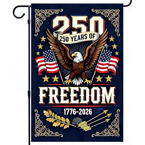 Bandiera USA per il 250° anniversario, decorazioni patriottiche per il 4 luglio, bandiera da giardino America 250 con disegno di aquila, striscione commemorativo USA 1776-2026