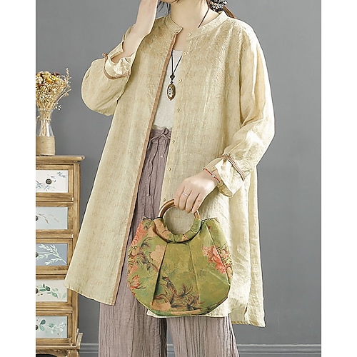 Per donna Camicie di cotone e lino Blusa Semplice Elegante Vintage Manica 3/4 Collo Alto Top lunghi Quotidiano Ferie Uscire Bottoni Champagne Rosso Verde Estate Primavera