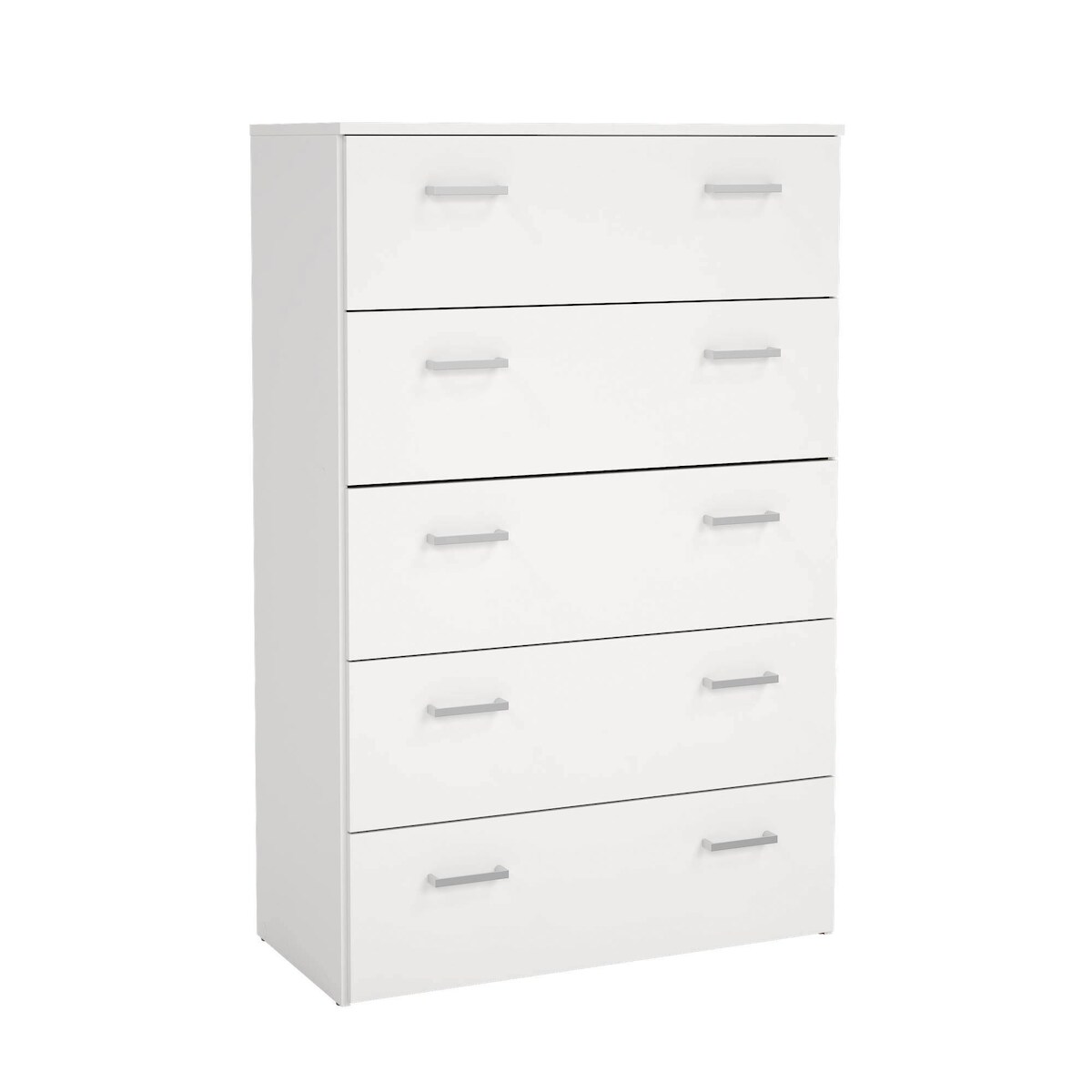 WellHome - Schlafzimmerkommode mit 5 Schubladen in der Farbe Weiß 75 x 36 x 115 cm - Duero White