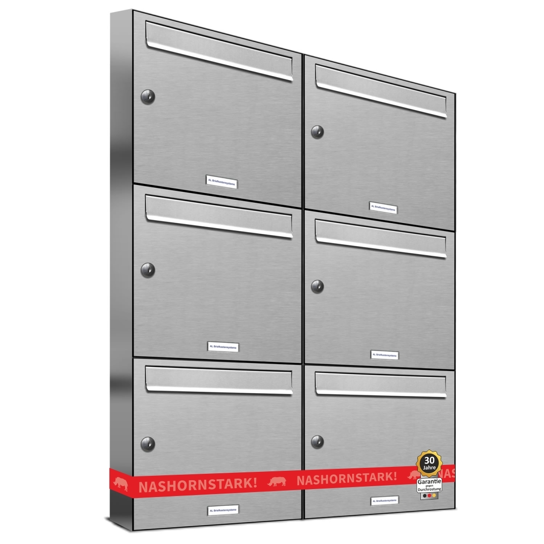 AL Briefkastensysteme 6 Fächer Premium Edelstahl Wand Briefkasten Anlage für Post A4, modern, robust und wetterfest, Artikelnummer: 331T6EA2