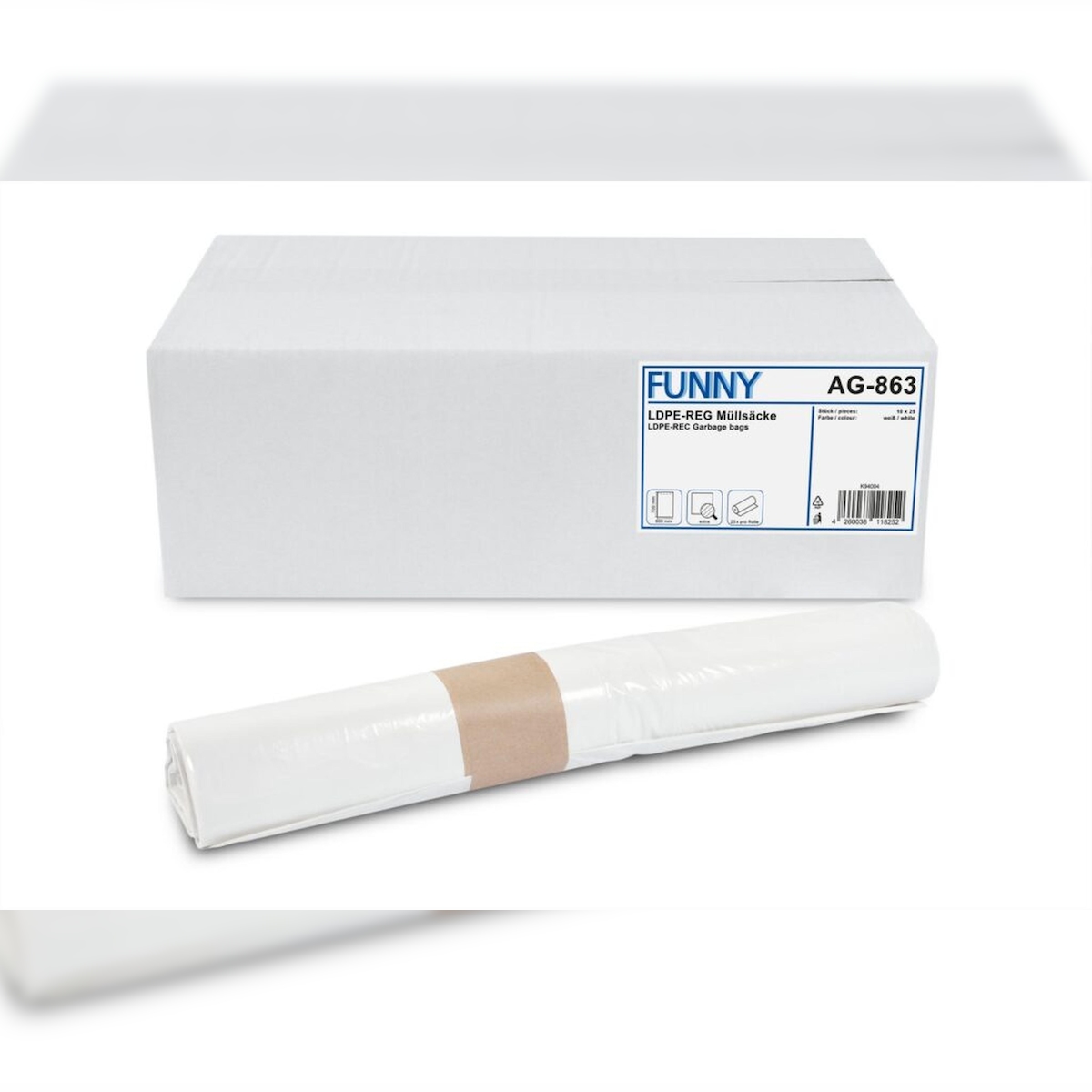 Plock GmbH Müllbeutel Funny - 1000 Abfallbeutel – extra - weiß - ca. 60 L - Müllsäcke