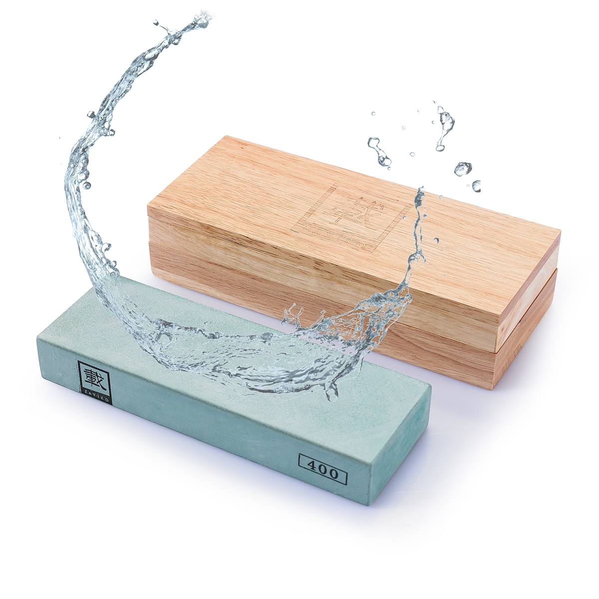 Zayiko Messer Schleifstein 400er Körnung für Reparatur und Vorschliff I Messerschärfer Wetzstein zum Schärfen von Damast und Stahl Messern I Abziehste