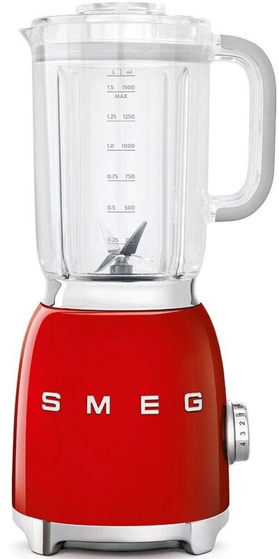 Smeg BLF03RDEU Standmixer, 1,5 l, 4 Geschwindigkeitsstufen, 4 Automatikprogramme, herausnehmbares Doppelmesser, transparente Deckelöffnung mit Dosierkappe, rutschfest, 800 W, rot