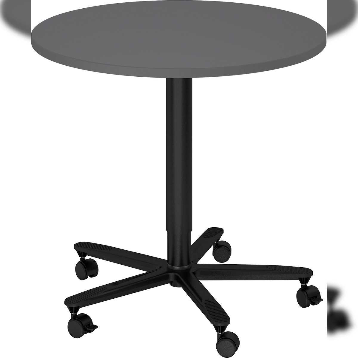 bümö Säulenhubtisch höhenverstellbar, Stehtisch Büro, Bistrotisch rund 80 x 80 cm - Besprechungstisch graphit, Stehtisch Holz-Platte, Säule aus