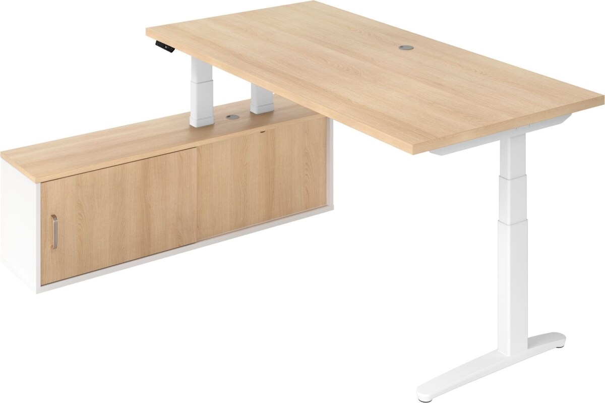 Hammerbacher Sitz-Stehtisch 200x100x65/130cm + Sideboard Eiche/Weiß
