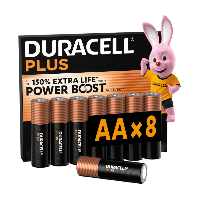 DURACELL Plus Piles AA (Lot de 8) – Piles Alcalines 1,5 V – Durent jusqu’à 150 % plus longtemps* grâce aux Actifs POWER BOOST** – Fiable pour vos Appareils du Quotidien – Emballage 0 % Plastique – Conservation garantie 10 ans - LR6 MN1500