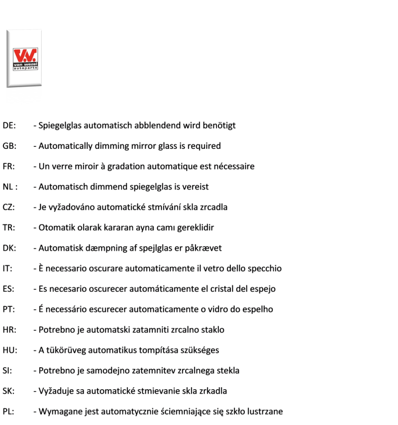 VAN WEZEL Außenspiegel 2946860 rechts 20-polig für MERCEDES-BENZ A177-810-440068 A177-810-4400 1778104400