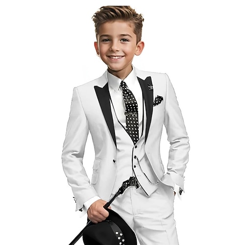 Completo da fedi nuziali per bambini, 3 pezzi, blazer gilet pantaloni da ragazzo, abito formale, casual, da esterno, da festa, alla moda, fresco, basic, tinta unita, tasche, bottoni, blu, nero,