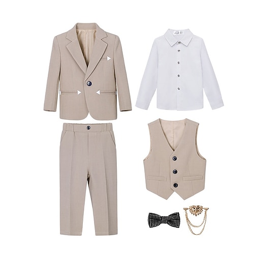 Completo da fedi per bambini, 5 pezzi, blazer gilet pantaloni cravatta ragazzo abito formale casual esterno festa moda cool basic blu beige grigio poliestere