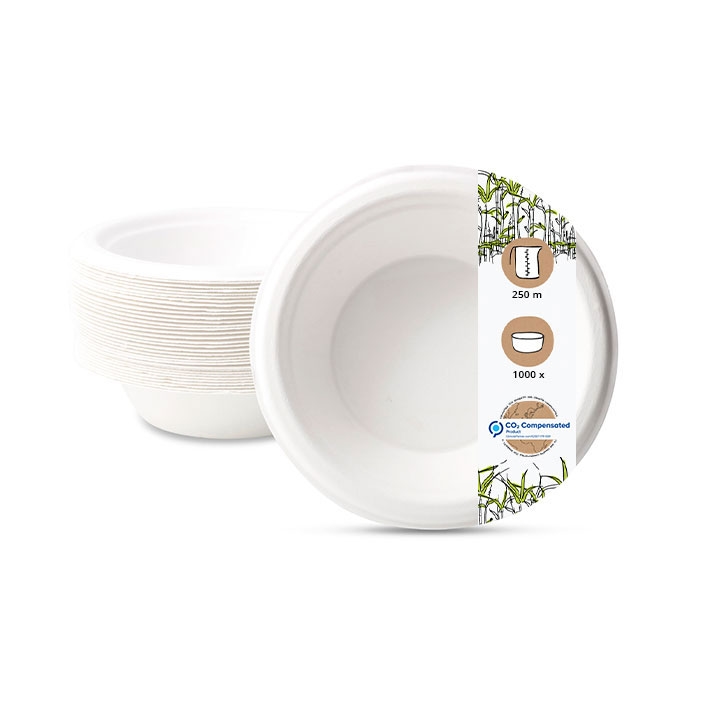 BIOZOYG 1000 Stück Schale aus Zuckerrohr 250 ml - Einwegschale für Salate, Bowls, Suppen, Eintöpfe - Runde Zuckerrohrschale - biologisch abbaubar