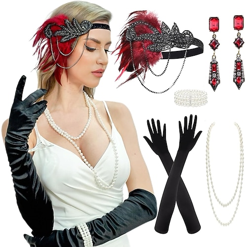 Set Vintage Anni 1920 Il grande Gatsby Fascia Flapper Set di accessori con accessori Charleston Costume Per donna Mascherata Festival Adulti Guanti Altri Accessori Fascia Tutte le stagioni