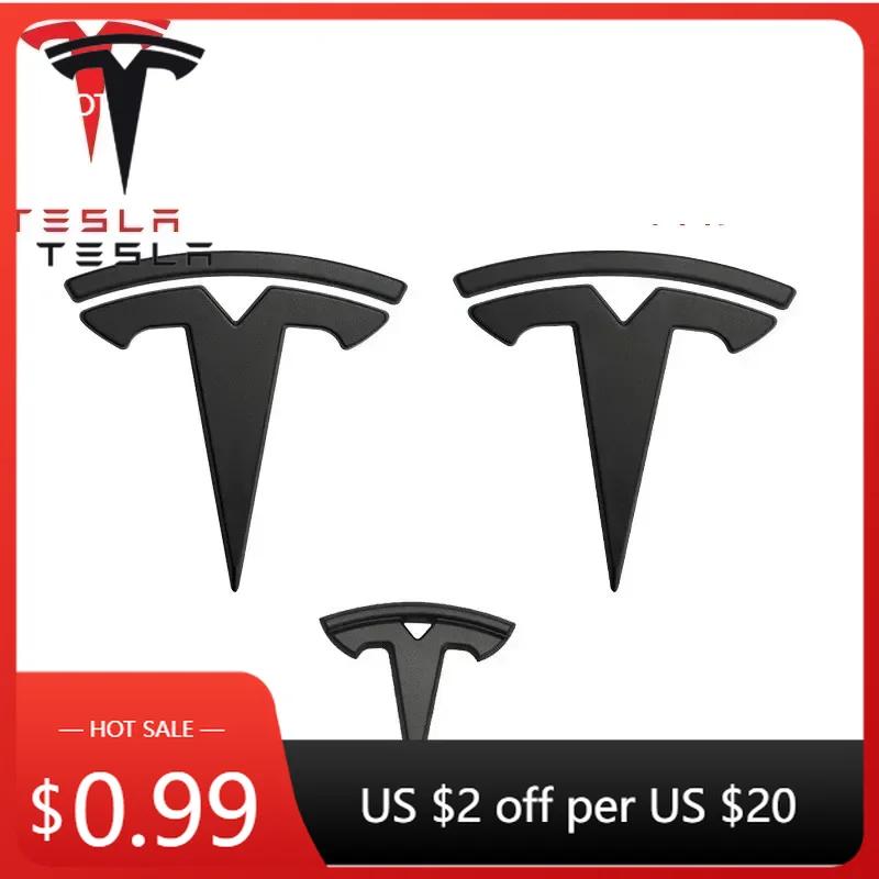 Bilklistremerke 2025 Varmt Tesla ABS 3 stk Glanset Matt Svart For Tesla Model 3 Y Auto Logoer Rattlapp Dekorasjon Modifisert A matt svart farge