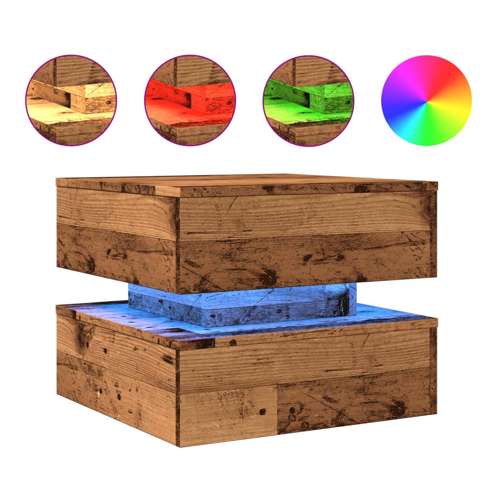 vidaXL Couchtisch mit LED-Leuchten Altholz-Optik 50x50x40 cm