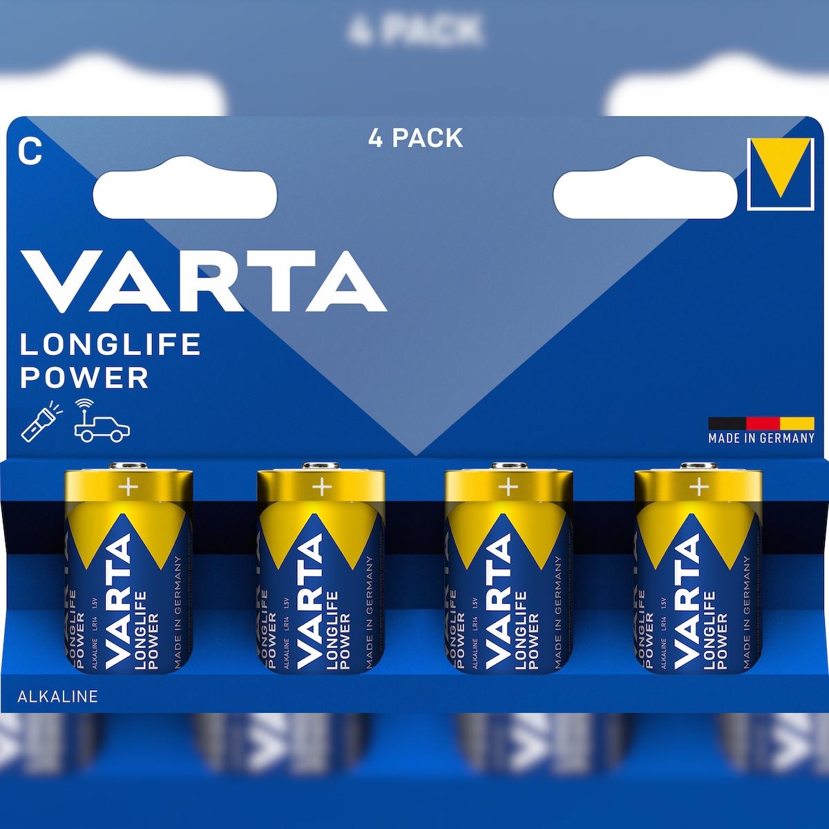 Varta Batterie Alkaline, Baby, C, LR14, 1.5V Longlife Power, Retail Blister (4-Pack)