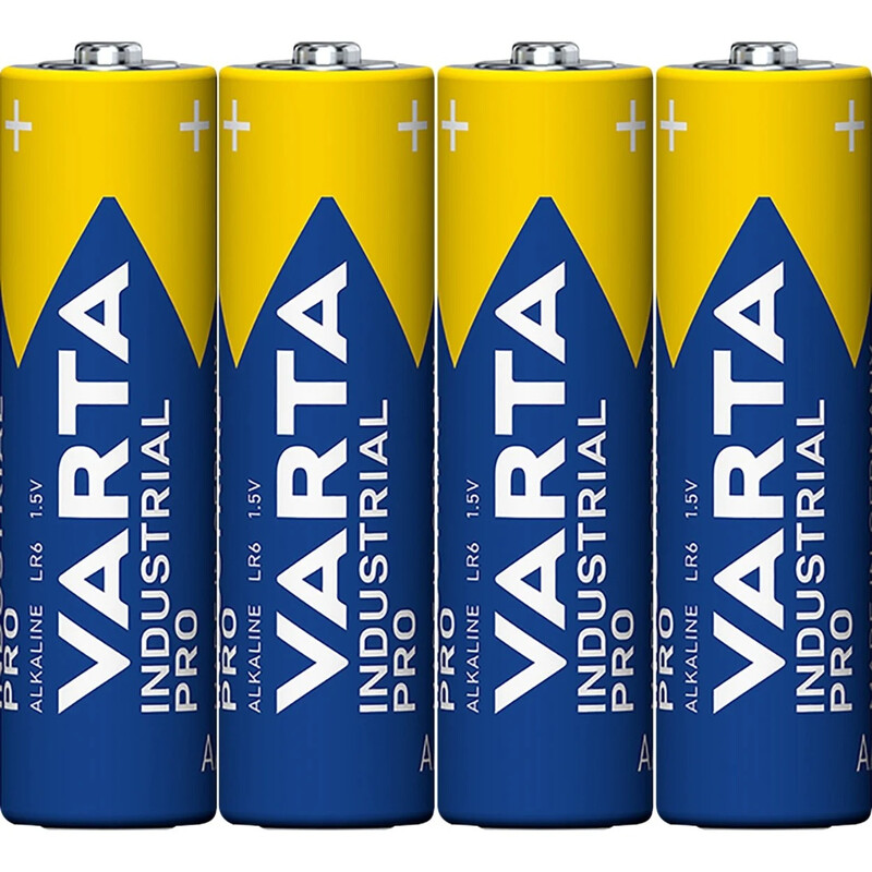 VARTA Batterie Alkaline, Mignon, AA, LR06, 1,5V Industrial Pro, Schrumpffolie (4er-Pack)