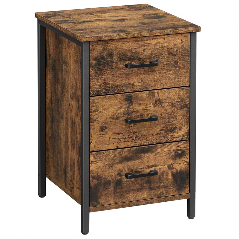 VASAGLE Bedside Table 3 Drawer Rustic Brown/Black