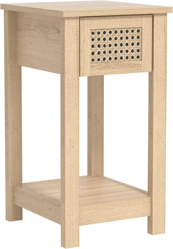 Galano Gio Bedside Table – Stylish Bedside with Rattan Effect – Slim Drawer Side Table with Storage – Cabinet for Bedroom, Hallway or Entryway – Oslo Oak