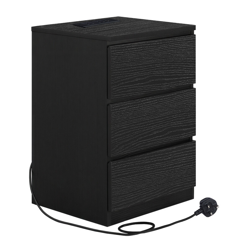 SONGMICSHOME Nightstand with Charging Station, Bedside Table, Side End Table with 3 Drawers,for Bedroom, Black