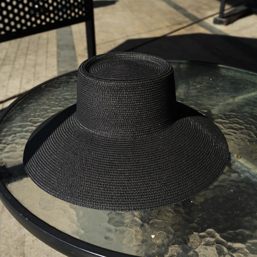 French Vintage Hepburn Black Big Eaves Bell Hat Top Hat Women'S Summer Shade Sun Protection Resort Beach Sun Straw Hat 56-58cm