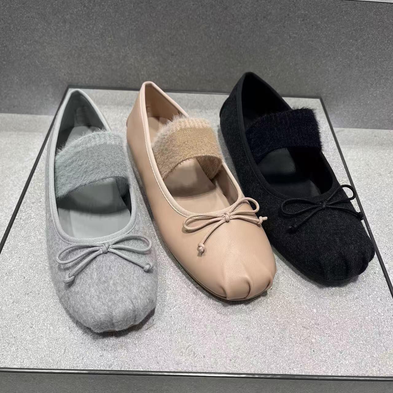 French Style Bow Round Toe Ballet Shoes Fairy Shoes Flat Gentle Evening Shoes Paired with Dress Shallow Mouth Single Shoes cm
