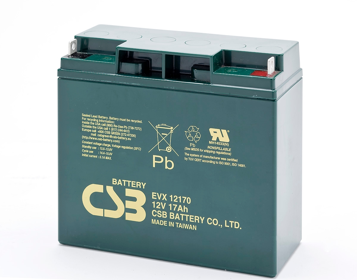 CSB-EVX12170 12 Volt AGM Bleiakku 17Ah, 181x76,2x167mm M5 Flachpol - M5 B/N Zyklenfest + Standby